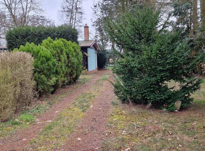 Derzeit ist das Grundstück mit einem gemauerten (1/2 Stein) Wochenendhaus von ca. 70 m² Grundfläche sowie einem Schuppen bebaut. Das Haus ist mit Küche, WC, Wohn- und Schlafraum ausgestattet.