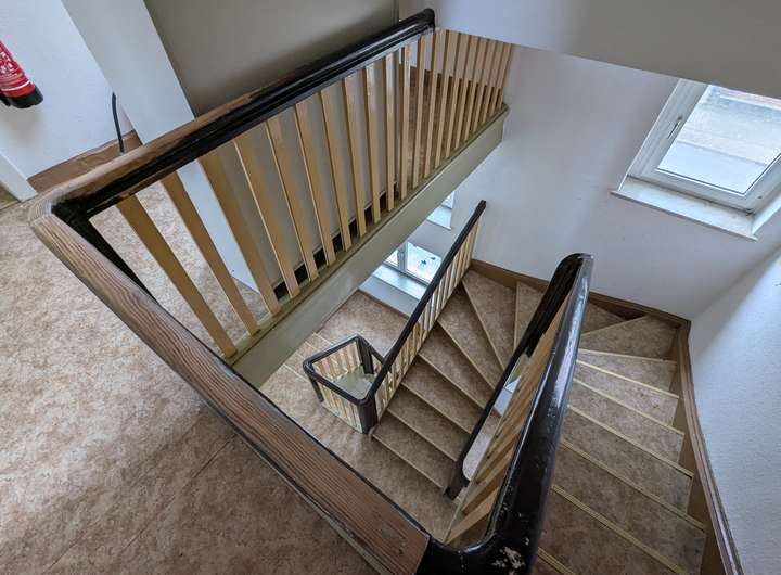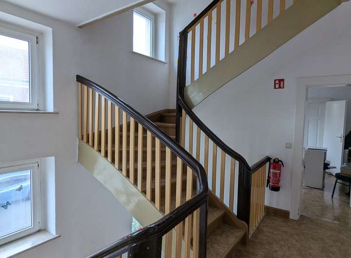 Das zweigeschossige, leerstehende Gebäude BJ ca. 1932 ist nicht unterkellert. Das Hauptgebäude hat einen großzügigen Eingangsbereich mit einer wunderschönen Treppe in die einzelnen Stockwerke. Zum Gebäude gehören Nebengebäude, wie Garagen und ein Hofgebäude mit Anbauten. Die Gebäude befinden sich in einem sanierungsbedürftigen Instandhaltungszustand.