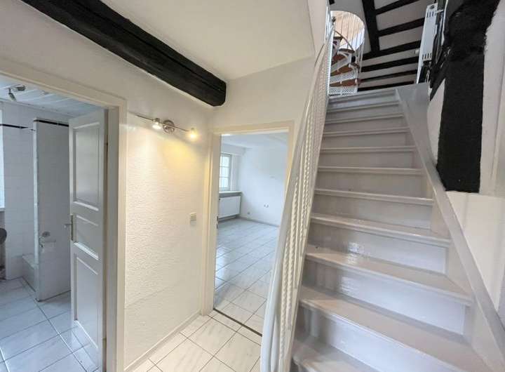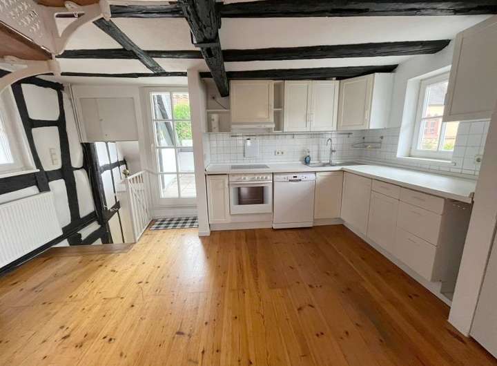 Dieses besondere Fachwerkensemble besteht aus zwei nebeneinanderliegenden Häusern mit jeweils separaten Eingängen, die gemeinsam ein stimmiges Gesamtbild ergeben. Hier wird historischer Charme mit modernisierten Wohnkomfort vereint. Die Häuser stammen ursprünglich aus dem 17. Jahrhundert und wurden sorgfältig gepflegt.