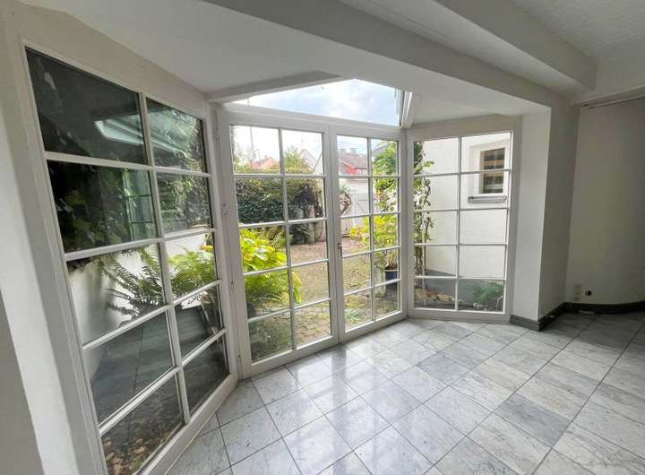 Ein idyllischer, uneinsehbarer Innenhof verbindet beide Häuser und schafft eine private, grüne Oase mitten im Ortskern. Hier lässt sich entspannen, feiern oder das Familienleben nach draußen verlagern.