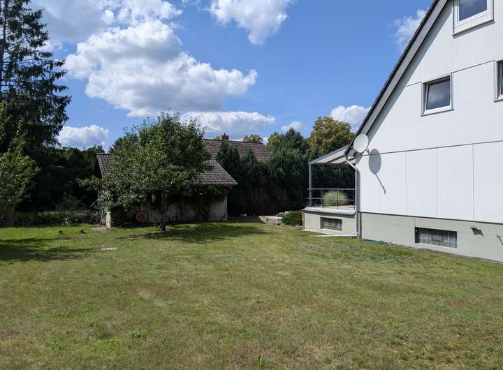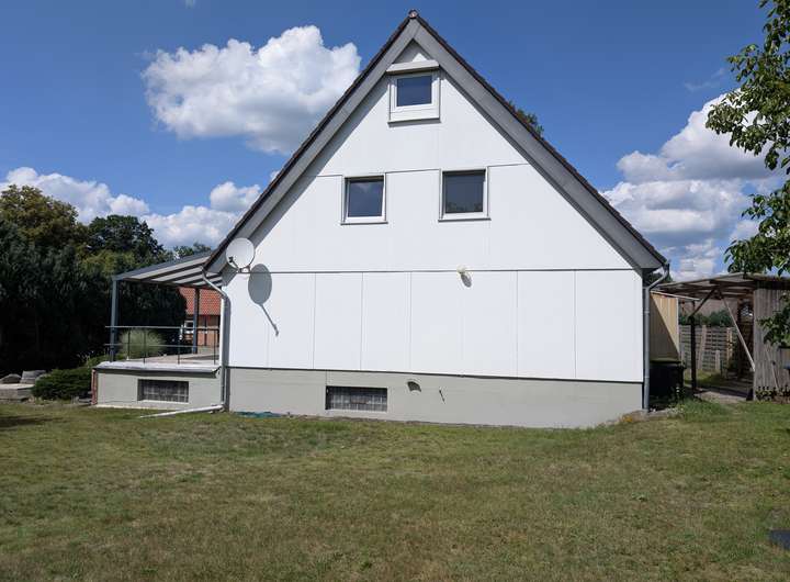 Einfamilienhaus mit viel Platz in ländlicher Lage. Dieses gepflegte Einfamilienhaus aus dem Jahr ca. 1974 wurde in Fertigbauweise errichtet und ist vollständig unterkellert. Es überzeugt durch eine großzügige Wohnfläche von ca. 149 m² und befindet sich in ruhiger, ländlicher Umgebung – ideal für Familien oder Menschen, die naturnah wohnen möchten. Das Erdgeschoss bietet ein durchdachtes Raumkonzept mit einem Flur, einer separaten Küche, einem Badezimmer, einem großzügigen Wohnzimmer, einem Schlafzimmer sowie einem Kinderzimmer. Im Obergeschoss stehen ein geräumiger Flur, zwei weitere Schlafräume und ein zusätzliches Badezimmer zur Verfügung. Aufgrund seiner Aufteilung wurde das Haus bisher als Zweifamilienhaus genutzt und bietet somit vielfältige Nutzungsmöglichkeiten. In den vergangenen Jahren wurden bereits Modernisierungsmaßnahmen durchgeführt: Die Fenster wurden erneuert, die Badezimmer teilweise neu gefliest und auch die Bodenbeläge überarbeitet. Die Beheizung erfolgt über eine Öl-Zentralheizung. Ergänzt wird das Platzangebot durch eine Garage in Fertigbauweise sowie ein Carport. Die gemütliche, komplett überdachte Terrasse ist sowohl vom Wohnzimmer als auch vom Schlafzimmer aus zugänglich und lädt zum Entspannen ein. Das Abwasser wird über eine Kleinkläranlage entsorgt. Der großzügige Garten bietet viel Raum für Gestaltungsideen, Spielmöglichkeiten oder eigene Projekte – ein echtes Highlight für Naturliebhaber und Gartenfreunde. Wesentlicher Energieträger: Heizöl EL Baujahr lt. Energieausweis: 1973 Energieausweistyp: Bedarfsausweis Energieausweis gültig bis: 02.04.2034 Energieverbrauchskennwert: 241,0 kWh/(m²*a) Energieeffizienzklasse: G