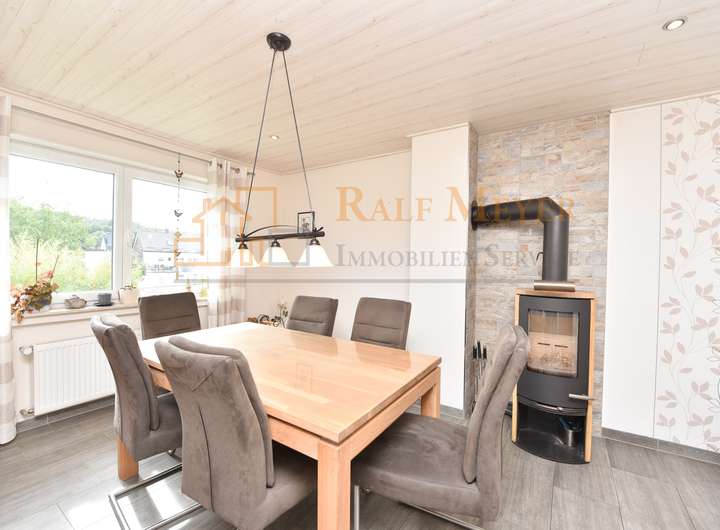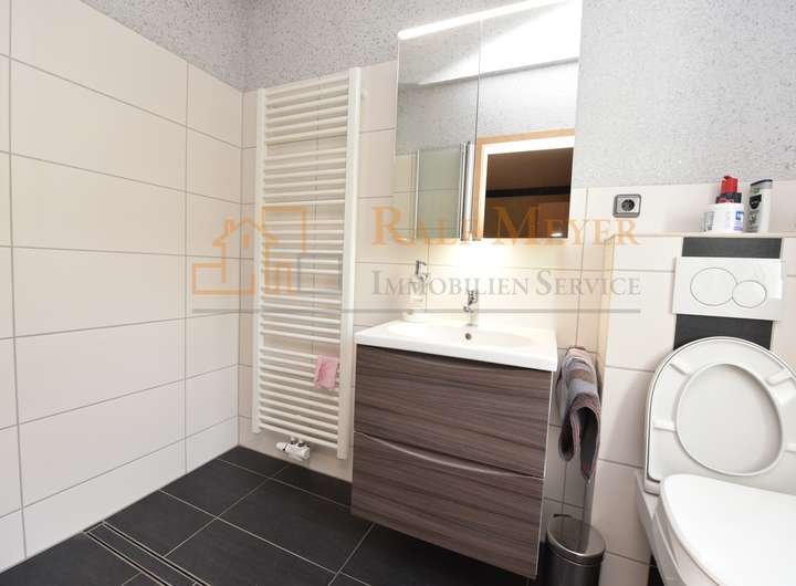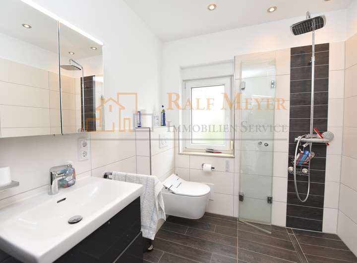 Das lichtdurchflutete Obergeschoss, mit ca. 140m² wurde in den letzten Jahren komplett renoviert bzw. modernisiert. Eine helle Wohn-Küche dient als zentraler Mittelpunkt dieser Ebene. Die komfortable Einbauküche lässt keine Wünsche offen. Der Wohnbereich wurde zum Essbereich hin teilweise geöffnet sodass ein großzügiger, einladender Raum entstanden ist. Für zusätzlichen Komfort sorgt der Kaminofen. Im hinteren Teil, zwischen 2 Schlafzimmern, befindet sich das erneuerte Tageslichtbad. Modern gestaltet, mit bodenebener Dusche bietet dieser Raum zusätzlich Platz für Waschmaschine und Trockner. Das dritte Schlafzimmer auf dieser Ebene, grenzt ein weiteres Bad. Auch dieses Tageslichtbad wurde erst kürzlich renoviert und mit einer bodentiefen Dusche ausgestattet. Abgerundet wird das Obergeschoss mit einer praktischen Abstellkammer im Flur.