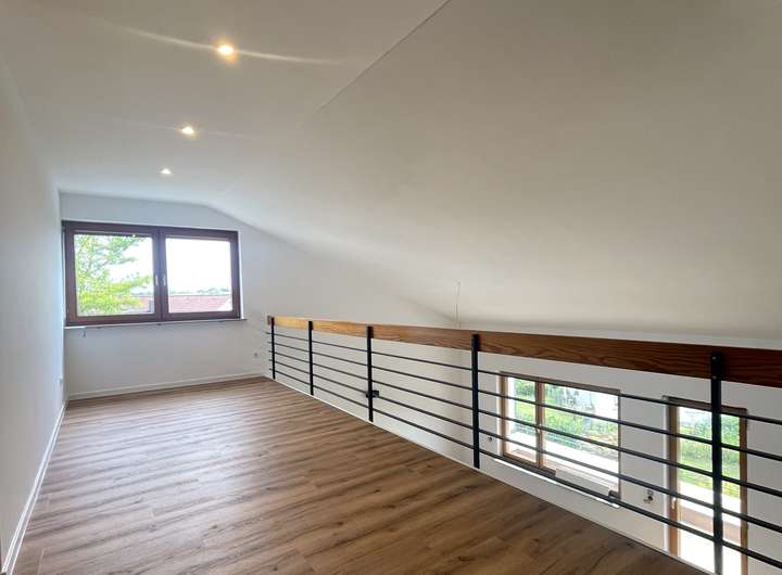Durch die zeitlose und helle Ausstattung des gesamten Hauses und die offene Galerie herrscht in dieser Wohnung eine tolle Atmosphäre.