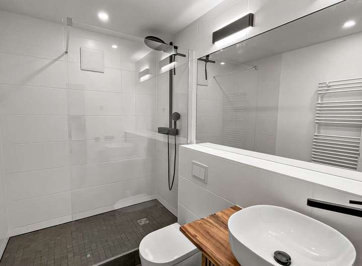- Modernes Bad mit Dusche und Fußbodenheizung