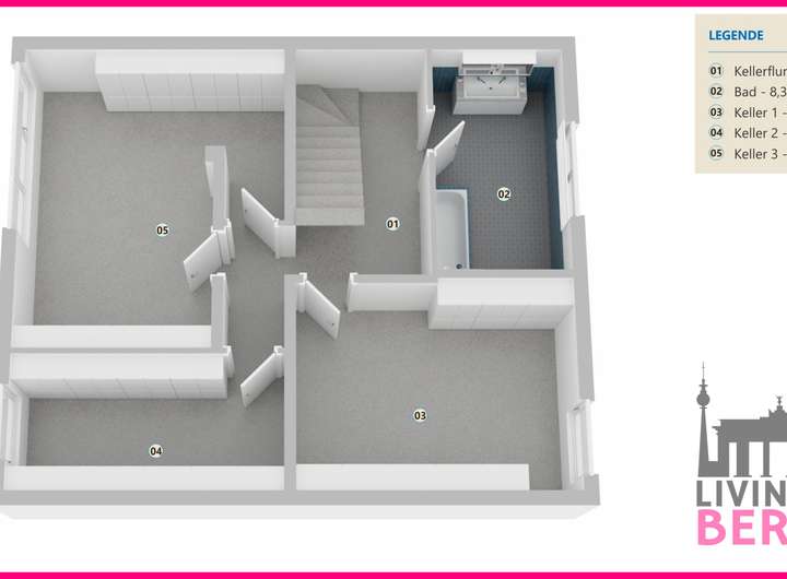 Über die in den Flur integrierte Treppe gelangen Sie in das Untergeschoss. Hier finden Sie auf weiteren ca. 63m² das Badezimmer, einen großen Kellerraum sowie zwei Hobbyräume, welche sich gut als Arbeits- oder Gästezimmer eignen würden. Einer der Räume könnte durchaus auch als Kinderzimmer hergerichtet werden, denn durch die angenehm hohen Decken sowie die große Fensterfläche, kommt hier wenig Souterrain-Feeling auf.