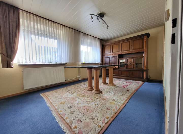 Dieses Einfamilienhaus, ursprünglich um ca. 1955 erbaut und mit einem Anbau von ca. 1967 erweitert, bietet auf ca. 160 m² Wohnfläche und einem großzügigen Grundstück von ca. 1.000 m² jede Menge Raum für Ihre persönlichen Ideen und Vorstellungen. Die massiven Wände und die solide Bauweise verleihen dem Haus eine stabile Grundlage, auf der Sie sich nach Ihren Wünschen entfalten können. Im Erdgeschoss finden Sie vier gut geschnittene Zimmer, die sich ideal für die unterschiedlichsten Wohnkonzepte nutzen lassen. Eine geräumige Küche bietet Platz für die Zubereitung gemeinsamer Mahlzeiten, und das sanierte Wannenbad lädt nach einem langen Tag zum Entspannen ein. Ein separates Gäste-WC sowie eine Diele runden das Raumangebot auf dieser Etage ab. Das Obergeschoss besteht ebenfalls aus vier Zimmern und einem modernisierten WC. Ein besonderes Highlight ist der große Balkon, der sich an ein Zimmer anschließt und von dem Sie den Blick in den Garten genießen können. Die großzügige Raumaufteilung bietet viel Potenzial für unterschiedliche Nutzungsmöglichkeiten, sei es für ein Heimarbeitszimmer, Kinderzimmer oder Gästezimmer. Das Haus ist teilunterkellert und bietet dadurch zusätzlichen Stauraum für Ihre Habseligkeiten. Beheizt wird das Haus über eine Gasheizung aus dem Jahr 1991, die für angenehme Wärme sorgt. Die Immobilie wurde stets gut gepflegt, ist jedoch sanierungsbedürftig und bietet Ihnen somit die Möglichkeit, Ihr eigenes Zuhause nach Ihren Vorstellungen zu gestalten. Die Doppelgarage bietet nicht nur Platz für zwei Fahrzeuge, sondern auch für zusätzliche Nutzungsmöglichkeiten. Ein Teil der Garage wurde bereits zu einem Büro umgebaut – ideal für das Home-Office oder als separater Arbeitsbereich. Der Garten dieser Immobilie ist ein wahres Highlight: Der großzügige Außenbereich mit gepflegtem Rasen und Zierbeeten lädt zum Entspannen und Verweilen ein. Eine gemütliche Sitzecke, ein Gartenhaus und eine teilweise überdachte Sitzgelegenheit bieten den perfekten Rahmen für schöne Stunden im Freien. Ob für Grillabende mit Freunden oder ruhige Momente allein – hier haben Sie die Möglichkeit, Ihre Freizeit ganz nach Ihrem Geschmack zu gestalten. Viel Raum für Ihre Ideen in ruhiger, aber gut angebundener Lage Diese Immobilie eignet sich ideal für Familien, Paare oder alle, die auf der Suche nach einem Zuhause mit viel Platz und einem Garten zum Entspannen sind. Das Haus hat zwar eine sanierungsbedürftige Substanz, doch mit etwas Kreativität und handwerklichem Geschick können Sie daraus ein ganz persönliches Heim schaffen. Nutzen Sie diese Chance, ein Haus nach Ihren Vorstellungen zu gestalten – in einer schönen Lage, die sowohl Ruhe als auch gute Anbindungen an das Umland bietet. Energie: Wesentlicher Energieträger: Erdgas Energieausweistyp: Bedarfausweis Gültig bis: 08.12.2034 Energieverbrauchskennwert: 247,7 kWh/(m²a) Baujahr laut Energieausweis: 1967 Baujahr Wärmeerzeuger: 1991 Energieeffizienzklasse: G