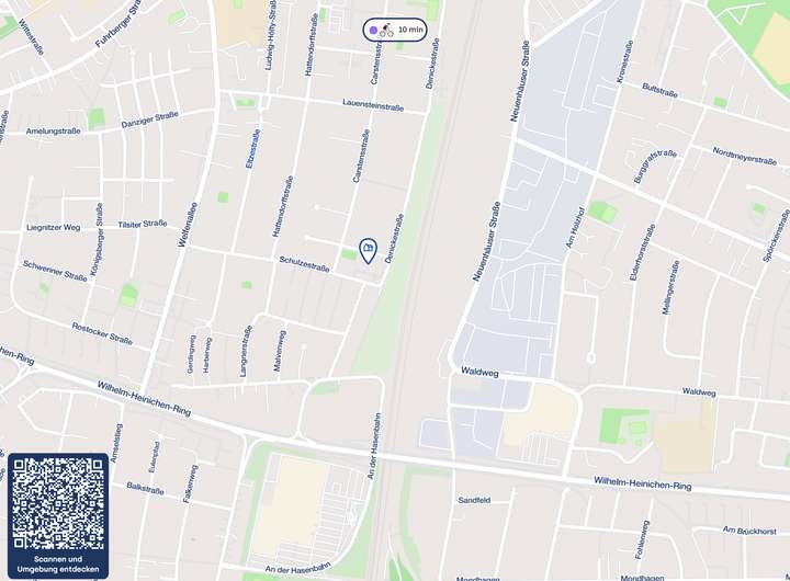Diese Immobilie befindet sich in einem familienfreundlichen Wohnviertel von Celle und bietet eine hervorragende Anbindung an das städtische Leben. Die Umgebung wird durch eine vielfältige Infrastruktur bereichert, die den täglichen Bedarf mühelos deckt. Ein wichtiges Merkmal der Lage ist die Nähe zu mehreren Spielplätzen, von denen der nächstgelegene nur etwa 130 Meter entfernt ist. Diese Nähe trägt zur kinderfreundlichen Atmosphäre des Viertels bei. Für den täglichen Einkauf sind Supermärkte wie EDEKA in ca. 260 Metern Entfernung schnell erreichbar, was den alltäglichen Besorgungen besonderen Komfort verleiht. Die Nähe zur Apotheke am Lauensteinplatz, die rund 270 Meter von der Immobilie entfernt liegt, sorgt zudem für eine einfache Abdeckung medizinischer Grundbedürfnisse. In Bezug auf Bildungseinrichtungen ist die Kita Löwenzahn etwa 260 Meter entfernt gelegen, was für junge Familien von großem Vorteil ist. Auch die Pestalozzi-Schule ist in ca. 320 Metern erreichbar, wodurch kurze Wege für Schulkinder garantiert sind. Die Anbindung an den öffentlichen Nahverkehr ist ebenfalls hervorragend. Die Bushaltestelle Lauensteinplatz befindet sich etwa 300 Meter entfernt und bietet eine bequeme Möglichkeit, sich innerhalb Celles und darüber hinaus zu bewegen. Wer aus der Stadt hinaus möchte, findet den Hauptbahnhof in etwa einem Kilometer Entfernung, was für Pendler ideal ist. Für überregionale Verbindungen liegt die A7 in ca. 15 Kilometern Entfernung und bietet eine zügige Anbindung zu größeren Städten wie Hannover. Der nächstgelegene internationale Flughafen Hannover-Langenhagen ist in etwa 40 Kilometern erreichbar, was für Geschäftsreisende oder Urlaubsplaner praktisch ist. Die Straße selbst ist von einer ruhigen und gepflegten Wohngegend geprägt, die sich durch eine angenehme, nachbarschaftliche Atmosphäre auszeichnet. Diese Gegend überzeugt durch eine ausgewogene Mischung aus Ruhe und Nähe zu urbanen Annehmlichkeiten, die den Bedürfnissen von Familien genauso gerecht wird wie denen von Berufstätigen und Senioren.