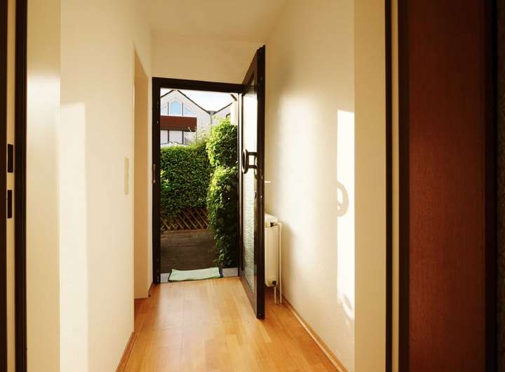 Im Erdgeschoss erwartet Sie ein einladender Eingangsbereich und eine tageslichthellen Gäste-Toilette. Das großzügige Wohn- und Esszimmer bildet das Herzstück des Hauses und öffnet sich über eine große Fensterfront zur sonnigen Terrasse und dem kleinen, pflegeleichten Garten – ideal zum Entspannen oder für gemütliche Stunden im Freien.