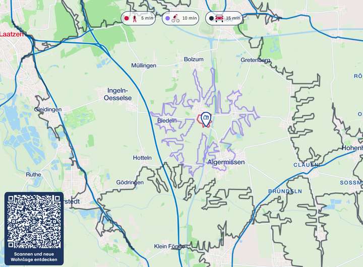 Die Immobilie in Algermissen-Lühnde bietet eine ideale Lage für all jene, die Wert auf eine gute Anbindung und eine ruhige Umgebung legen. Die Nähe zu wichtigen Einrichtungen und Verkehrsanbindungen macht diesen Standort besonders attraktiv. Die Anbindung an den öffentlichen Nahverkehr ist hervorragend. Die nächste Bushaltestelle, Lühnde/Südsiedlung, ist nur etwa 30 Meter entfernt und bietet regelmäßige Verbindungen in die umliegenden Städte. Für Pendler ist die Bahnstation Algermissen in ca. 2,3 Kilometern Entfernung eine praktische Option. Wer mit dem Auto unterwegs ist, erreicht die Autobahnauffahrt in etwa 3,8 Kilometern, was eine schnelle Verbindung zu weiter entfernten Zielen ermöglicht. Der Flughafen Hannover ist in ca. 38 Kilometern erreichbar, was sowohl für Geschäftsreisende als auch für Urlaubsreisende von Vorteil ist. Ein weiterer Vorteil dieser Lage ist die Nähe zum Messegelände in Hannover, das in ca. 17 Kilometern erreichbar ist. Dies ist besonders vorteilhaft für Geschäftsleute und Messebesucher. Für den täglichen Bedarf stehen mehrere Einkaufsmöglichkeiten zur Verfügung. Der nächste Supermarkt, ein Netto Marken-Discount, ist ca. 1,6 Kilometer entfernt. Weitere Einkaufsmöglichkeiten wie Rewe und nah & gut Krone sind ebenfalls in der Nähe. Medizinische Versorgung ist durch die Gemeinschaftspraxis Dr. Michael Schütte und Fr. Elisabeth Speer, die etwa 2 Kilometer entfernt liegt, gewährleistet. Für Familien mit Kindern bietet die Umgebung zahlreiche Optionen. Die Grundschule Lühnde ist nur etwa 695 Meter entfernt, und mehrere Kindergärten befinden sich in unmittelbarer Nähe. Auch Freizeitmöglichkeiten sind zahlreich vorhanden. Der nahegelegene Sportplatz und verschiedene Spielplätze bieten Raum für sportliche Aktivitäten und Erholung. Insgesamt bietet die Immobilie in Algermissen-Lühnde eine ausgewogene Mischung aus Ruhe und Erreichbarkeit, ideal für Familien und Berufstätige, die eine gut angebundene und dennoch entspannte Wohnlage suchen.