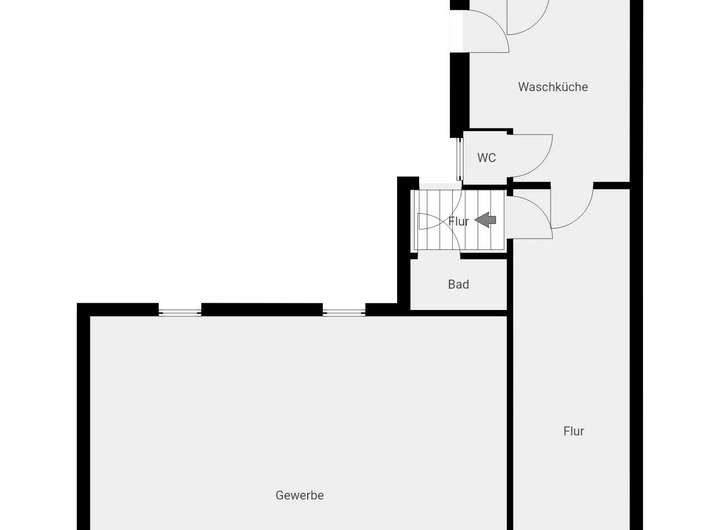 Im Erdgeschoss befindet sich eine Gewerbeeinheit, die derzeit als Schuhgeschäft betrieben wird. Die Verkaufsfläche umfasst ca. 60 m² und eignet sich ideal für den Einzelhandel oder auch für eine neue geschäftliche Idee. Zusätzlich sind auf dieser Etage ein Badezimmer mit Anschlüssen (aktuell als Lager genutzt), ein ehemaliges Waschhaus mit Gasheizung, ein separates WC sowie ein praktischer Abstellraum untergebracht.