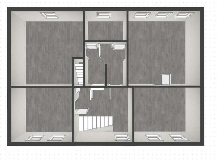 Im Dachgeschoss eröffnet sich Ihnen ein weiterer Wohnbereich mit insgesamt vier Zimmern. Zusätzlich gibt es ein separates Zimmer, das zuletzt als Kinderzimmer genutzt wurde. Diese Etage bietet zahlreiche Gestaltungsmöglichkeiten – ob als großzügige Familienwohnung oder Arbeitsbereich.