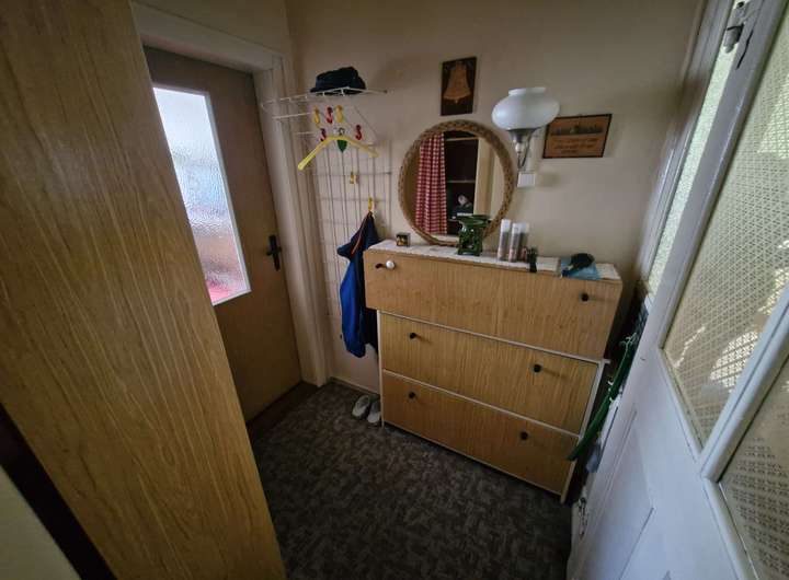 Die zweite Wohnung gliedert sich in eine helle Küche, ein Wohnzimmer und ein Schlafzimmer – ideal für Paare oder kleine Familien.