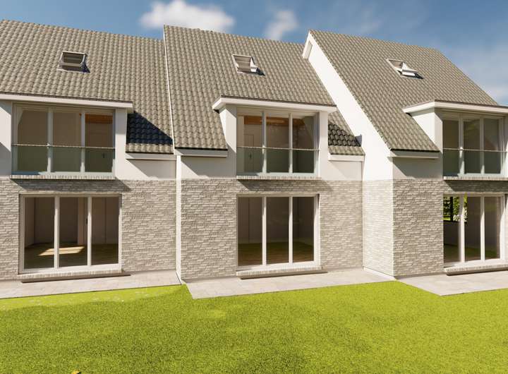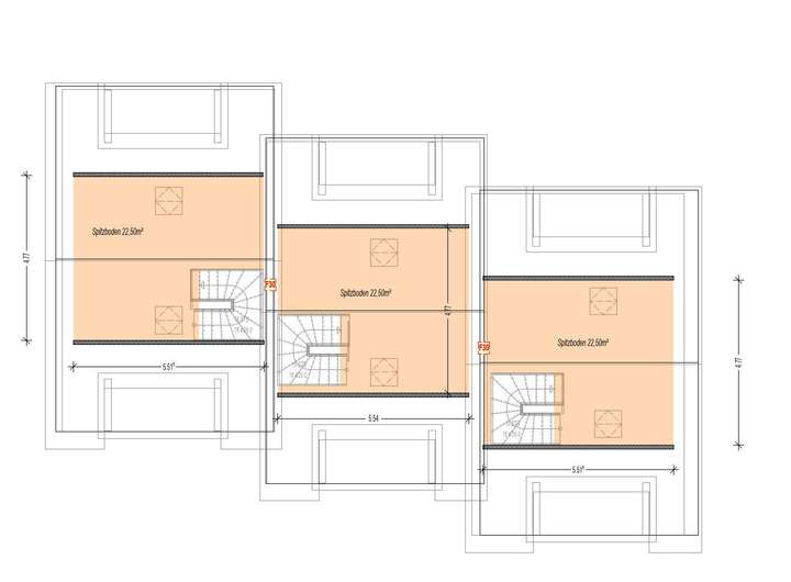 Townhäuser Dämmpaket 40 Eff. Standard, 1. OG mit 2 Gauben und ausgebauten Dachboden mit 2 Dachflächenfenstern und Dreiecksfenster.