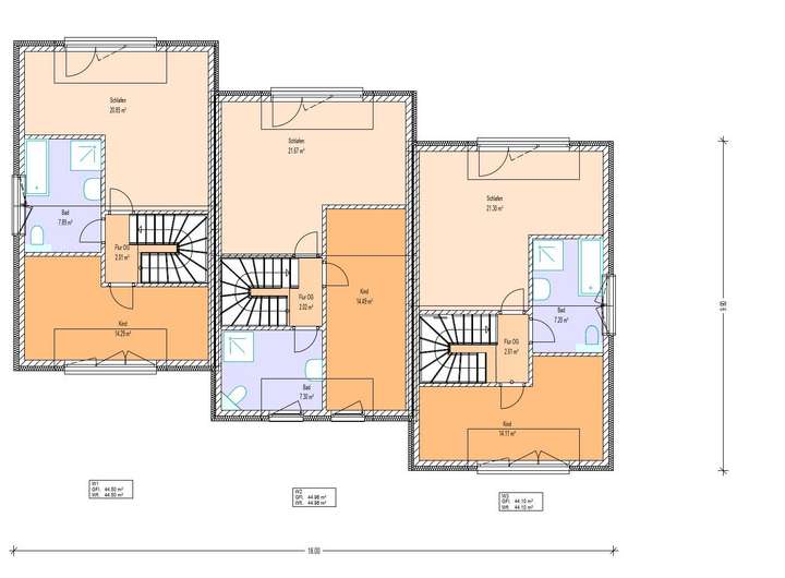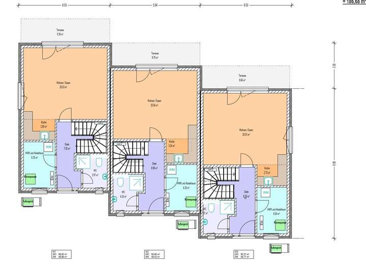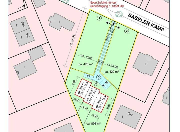 Grundstück gesamt: ca. 1785 m², das Grundstück für die Reihenhäuser ist ca. 896 m² groß.