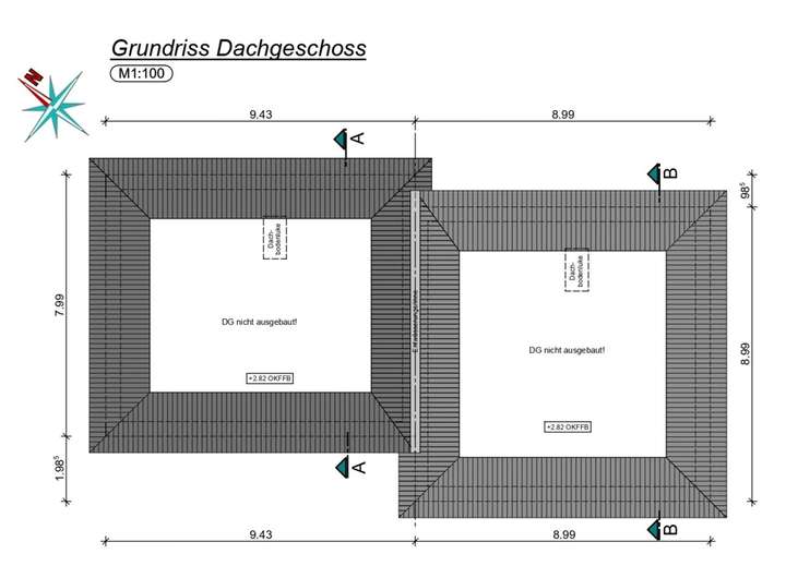 Das Dachgeschoss ist nicht ausgebaut, bietet aber hervorragendes Potenzial für zusätzlichen Wohnraum ganz nach Ihren individuellen Vorstellungen – ob zusätzliche Schlafzimmer, ein Homeoffice oder ein Gästezimmer.