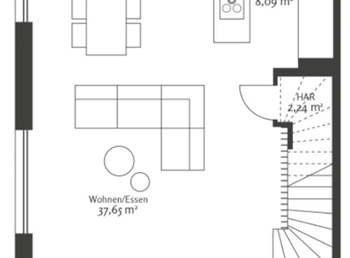 Mit ca. 199 m² Wohnfläche bietet das Haus großzügigen Raum für Paare, Familien oder Berufstätige mit Anspruch an modernes Wohnen. Der offene Grundriss sorgt für lichtdurchflutete Räume, in denen sich Wohnen, Arbeiten und Entspannen perfekt verbinden lassen. Schon beim Betreten fällt die Weite des Erdgeschosses auf: Der offene Wohn- und Essbereich mit angrenzender Küche wird durch große Fensterflächen harmonisch mit Garten und Terrasse verbunden – ideal für gesellige Abende oder erholsame Stunden im Freien.