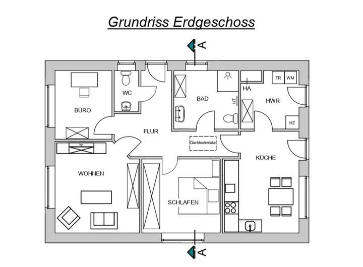 Das Dachgeschoss ist als Bodenraum geplant und bietet bei Bedarf eine großzügige Ausbaureserve.