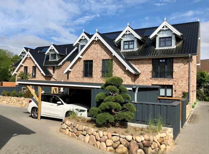 Die Außenanlagen sind hochwertig angelegt und zeichnen sich durch ihre Friesenwälle und ausgewählte Begrünung aus.