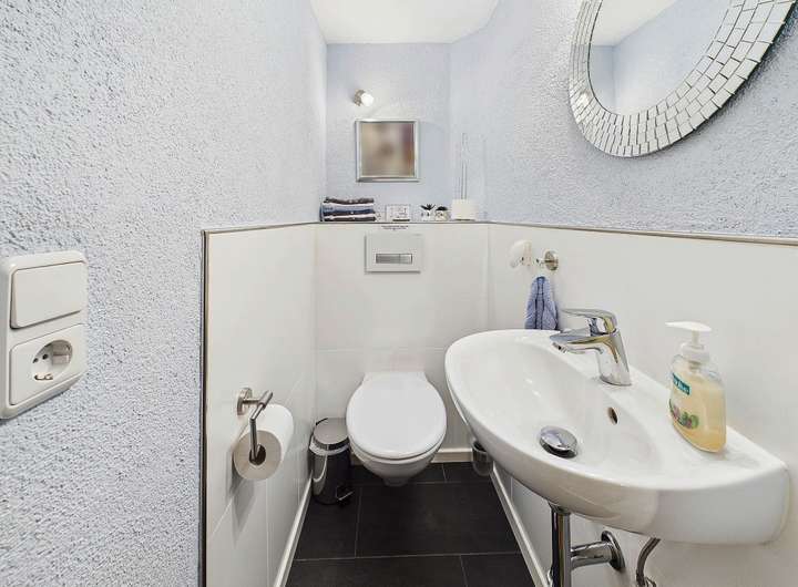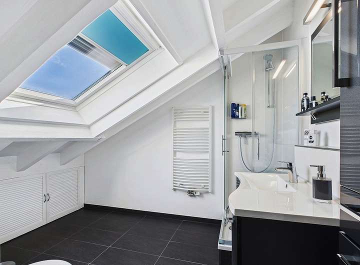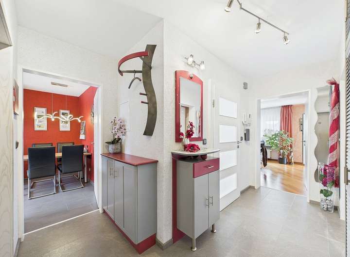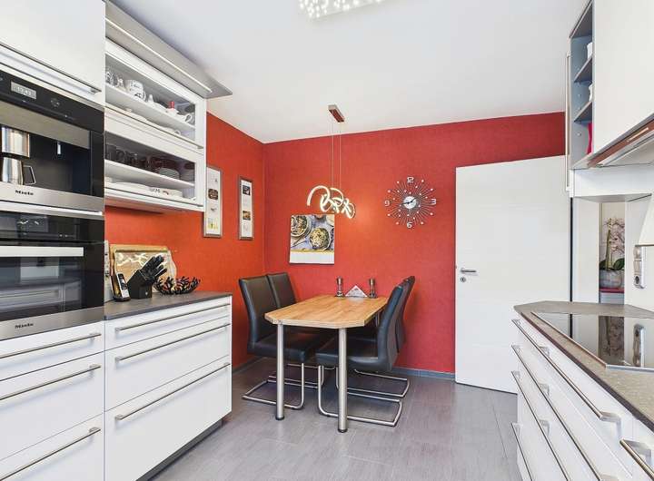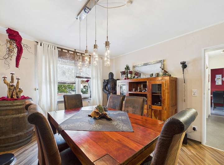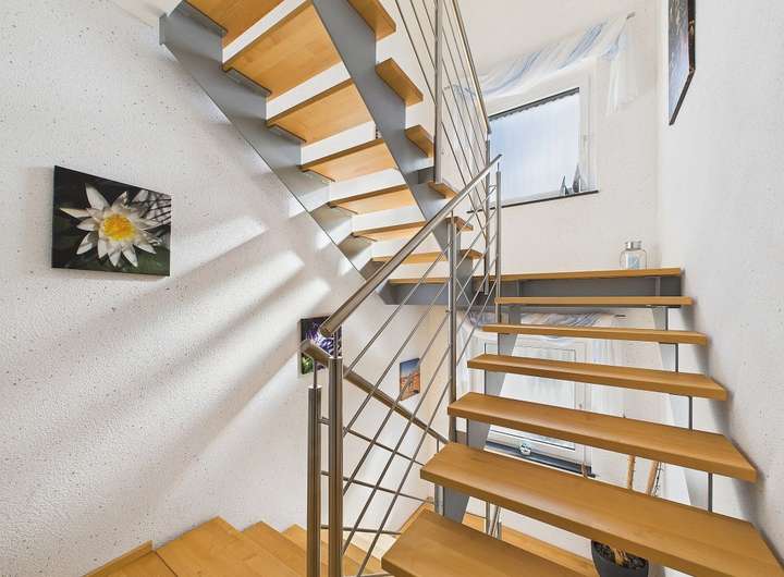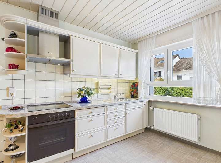 Ausstattung und Highlights im Überblick: - Idyllische Gartenoase mit kleinem Teich und Terrasse, in sonniger Westlage - Einladender Vorgarten und Hauseingangsbereich – denn schon der erste Eindruck zählt - Garage mit elektrischem Tor und weitere PKW-Stellplätze in der Hofeinfahrt - Exklusive Einbauküche im modernen Design mit hochwertiger Ausstattung - Premium-Küchengeräte überwiegend Miele - Funktionale Einbauküche im Obergeschoss - Praktische Single-Küche im Dachgeschoss - Dachstudio komplett wohnraumähnlich ausgebaut (Nutzfläche) - Zwei überdachte Sonnenbalkone mit Westausrichtung und Markisen - Hochwertig Gepflasterte Hofeinfahrt - Wärmegedämmte Fassade und Dach für optimale Energieeffizienz - 3 Tageslichtbäder, davon zwei mit Badewanne und eines mit Dusche - 2 Gästetoiletten und zusätzlich ein WC im Keller - Elektrische Rollläden, teils mit programmierbarer Zeitschaltung - Elektrisch bedienbare Dachflächenfenster mit Innenjalousien - Elektrischen Außenrollläden und Regensensor an den Dachfenstern (mit Fernbedienung) - Gas-Brennwertheizung mit zentraler Wasseraufbereitung (Baujahr 2001) - Partyküche im Keller mit Gartenzugang – ideal für gesellige Anlässe. - Großer Hobbyraum und separater Büroraum im Keller - Vorratskeller und Lagerraum - Praktische Abstellkammern in beiden Wohnungen - Böden: Parkett, Laminat und Fliesen