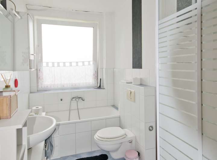 - Bad mit Dusche, Waschbecken, Handtuchheizkörper, WC; bereits modernisiert