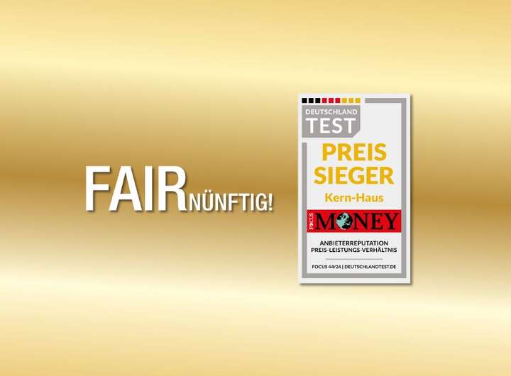 Kern-Haus baut individuelle und massive Architektenhäuser zu einem attraktiven Preis-Leistungs-Verhältnis – und das bereits mit einer Erfahrung seit 1980. Bei Kern-Haus erhalten Sie unter anderem 10 Jahre Gewährleistung auf die wesentlichen Bauleistungen, bis zu 24 Monate Preissicherheit sowie eine dokumentierte 5-Phasen-TÜV-Prüfung während der Bauphase. Jedes Kern-Haus als Effizienzhaus 40 ist bereits QNG-zertifiziert durch die Deutsche Gesellschaft für nachhaltiges Bauen (DGNB). 40 Jahre Expertise für das massive, energieeffiziente Bauen: Kern-Haus realisiert Massivhäuser in Ziegel, Bims, Porenbeton oder Stahlbeton (DuoTherm). Kern-Haus setzt auf eine hohe Bauqualität der Handwerker und auf eine große Auswahl starker Marken. So verwendet Kern-Haus beim Bau Ihres Hauses nur hochwertige Markenprodukte renommierter Hersteller – wie etwa Produkte von Villeroy & Boch. Preise und Auszeichnungen von Kern-Haus: - German Brand Award in den Jahren 2018 und 2021 - Hausbau Design Award: Sieger in den Jahren 2017, 2018, 2019, 2020, 2021, 2022 und 2023 - Deutscher Traumhauspreis: Sieger in den Jahren 2014, 2015, 2016 und 2018 und Silber 2017, 2020 und 2021 - Mittelstandspreis "Top 100" in den Jahren 2014, 2016, 2018, 2020 und 2022 - German Design Award im Jahr 2018 Weitere Informationen Der gezeigte Preis versteht sich inklusive Grundstück und exklusive der Baunebenkosten.