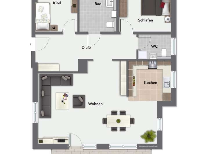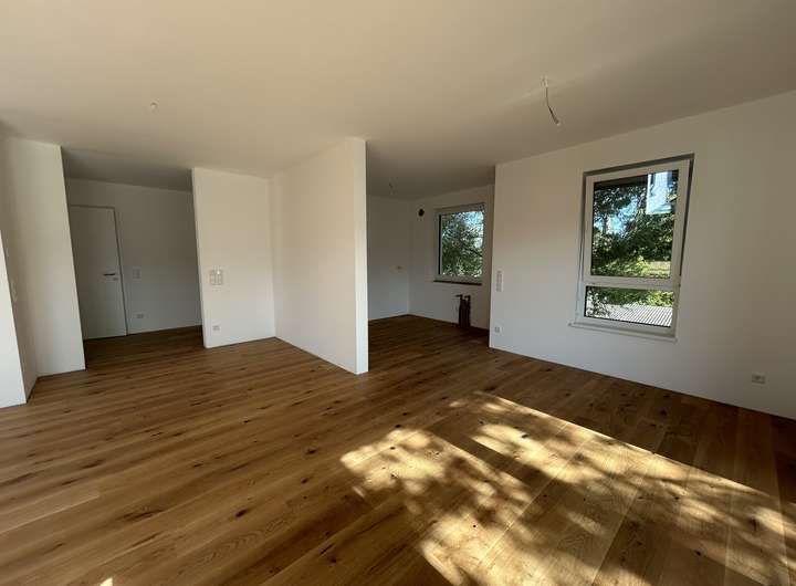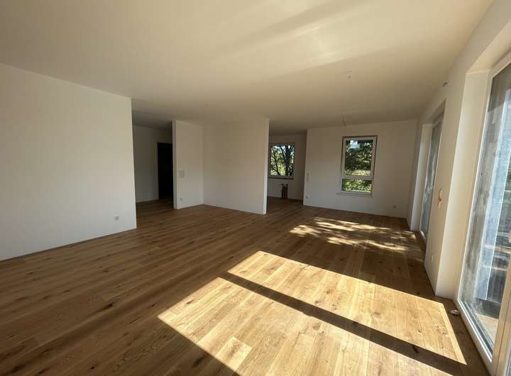 Der offene Wohn- und Essbereich mit integrierter Küche bildet das Herzstück der Wohnung. Die hochwertige Einbauküche wird vom Vermieter eingebaut und bietet dank Premiumgeräten von Siemens sowie modernem Design und hoher Funktionalität ein erstklassiges Kocherlebni
