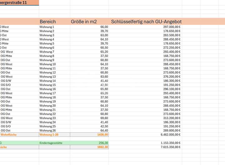 - GU-Angebot schlüsselfertig für 4500€/m2 - Insgesamt ca. 5400€/m2