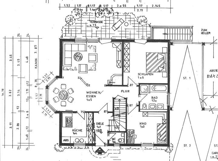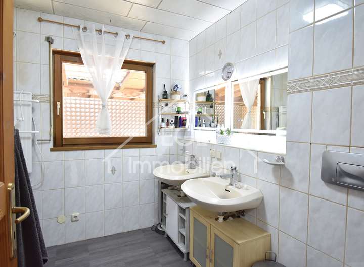 Dieses freistehende Zweifamilienhaus aus dem Jahr 1994 liegt in attraktiver Höhenlage oberhalb des Mittelrheintals in der Ortsgemeinde Auel. Die Immobilie bietet ca. 186 m² Wohnfläche auf drei Ebenen sowie ca. 40 m² Nutzfläche und eignet sich für verschiedene Wohnkonzepte wie Mehrgenerationenwohnen, Teilvermietung oder Wohnen und Arbeiten unter einem Dach. Die Hauptwohnung erstreckt sich über Erd- und Untergeschoss mit rund 132 m² Wohnfläche. Der großzügige Wohn- und Essbereich besticht durch freiliegendes Gebälk, das dem Raum eine besondere Atmosphäre verleiht – eine gelungene Kombination aus offenem Wohngefühl und charmantem Landhausstil. Ein gemütlicher Kachelofen, eine moderne Küche (2010) sowie der direkte Zugang zur großzügigen Terrasse und dem Garten schaffen Wohnqualität mit Wohlfühlfaktor. Zwei Schlafzimmer und ein Tageslichtbad ergänzen diese Ebene. Im Untergeschoss befinden sich zwei weitere Schlafzimmer, ein Bad sowie Hauswirtschafts- und Abstellräume. Die Einliegerwohnung im Dachgeschoss (ca. 54 m²) ist separat zugänglich und umfasst ein Wohn-/Esszimmer mit Balkon, ein Schlafzimmer, Küche und Bad – ideal für die Vermietung oder als Rückzugsbereich. Der großzügige, eingewachsene Garten bietet viel Privatsphäre, eine große Terrasse, Gartenlauben, Obststräucher, einen kleinen Teich sowie Rasenflächen.