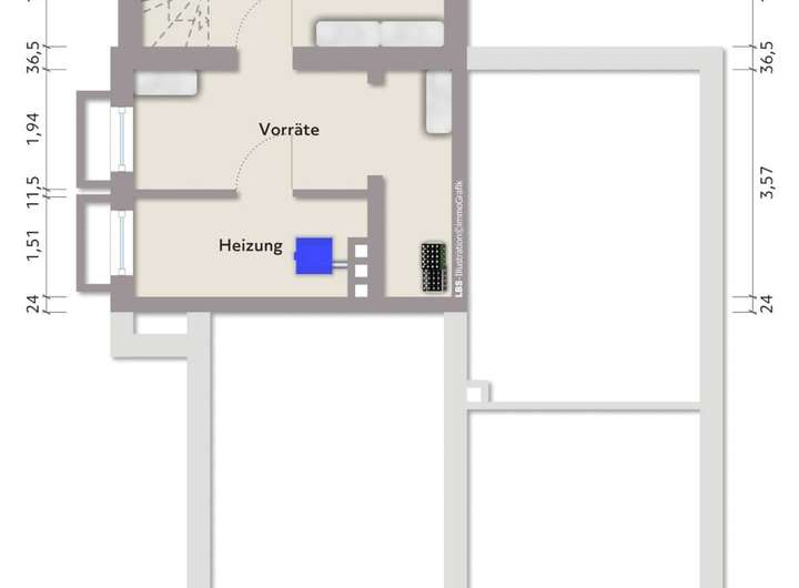 Im Keller befindet sich die Heizung, sowie ein großer Stauraum mit vielen Möglichkeiten.