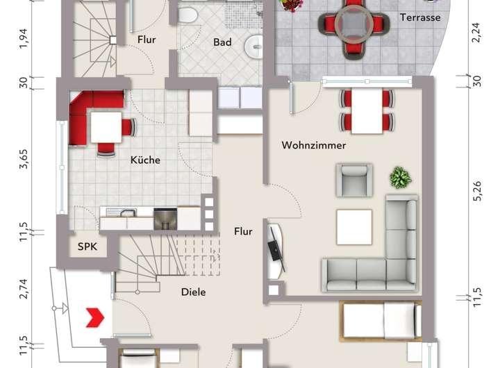 Im Erdgeschoss stehen Ihnen folgende Räumlichkeiten zur Verfügung: