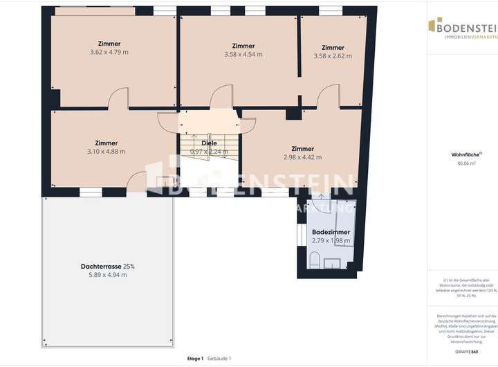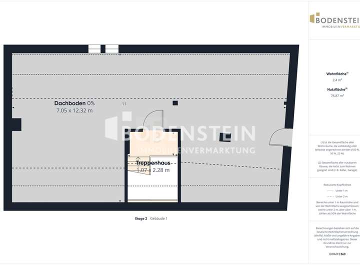 diese wurde nicht in der Wohnfläche berechnet. Bei einer Anrechnung von 25% sind das zusätzliche 17 m² mehr!