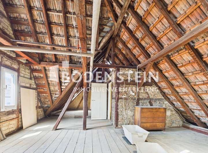 Auf rund 130 m² Wohnfläche und über 500 m² Nutzfläche eröffnet sich Ihnen ein Zuhause, das heute noch vom Charme vergangener Zeiten geprägt ist und morgen Ihre persönliche Handschrift tragen könnte. Das Besondere: zwei großzügige Dachböden mit ca. 120 m² und ca. 47 m², die sich wunderbar zu Wohn- oder Arbeitsräumen entwickeln lassen.