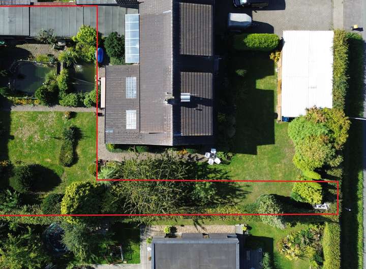 Ein wesentlicher Vorteil: Sie genießen maximale Gestaltungsfreiheit und können Ihre Baupläne ganz nach Ihren persönlichen Vorstellungen realisieren. Auf dem vorderen Teil des Grundstücks befindet sich ein bestehendes Zweifamilienhaus. Der hintere, hier angebotene Grundstücksteil muss noch von dem vorderen bebauten Grundstück abgegrenzt werden. Die genaue Teilung ist vertraglich noch nicht festgelegt, wodurch Sie die Möglichkeit haben, bei der Aufteilung mitzuwirken.