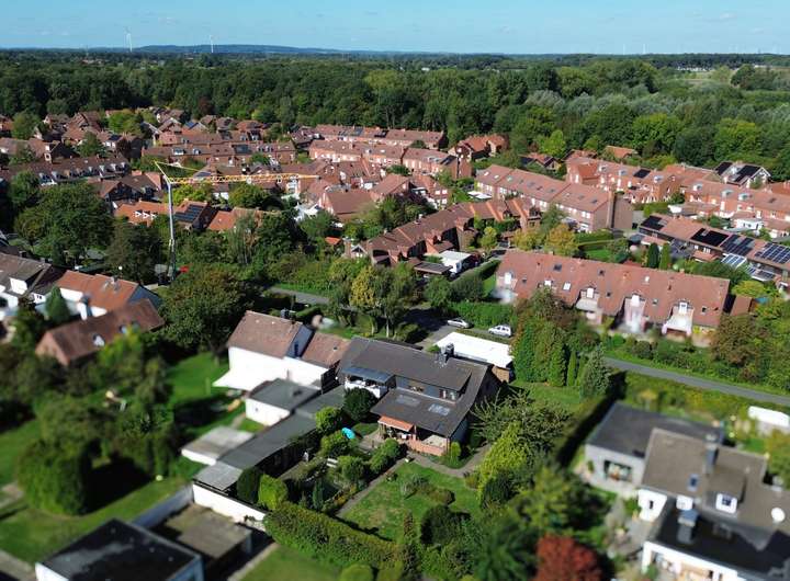 Nahegelegene Einkaufsmöglichkeiten, Ärzte, Schulen und Kindergärten machen die Lage für seine Bewohner (ca. 9.250 Einwohner) äußerst attraktiv, ebenso wie die Anbindung an die nahegelegenen Autobahnen A1 und A43. Gegenüber, in fußläufiger Entfernung, erstreckt sich ein weitläufiger Park mit einem Bach und einem angrenzenden Wald – ideal für entspannende Spaziergänge, Jogging oder Radtouren. Radfahrer erreichen das Stadtzentrum in nur 15 Minuten, sodass hier die perfekte Kombination aus Ruhe und schneller Erreichbarkeit der Stadt geboten wird. Zudem ist Mecklenbeck mit drei Buslinien der Stadtwerke Münster an das Stadtzentrum angebunden. Unweit des Grundstücks befindet sich außerdem ein Bahnhof, der regelmäßige Verbindungen in Richtung Albachten und Münster bietet, was die Lage für Pendler noch attraktiver macht.