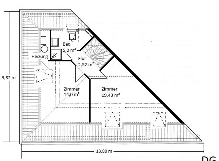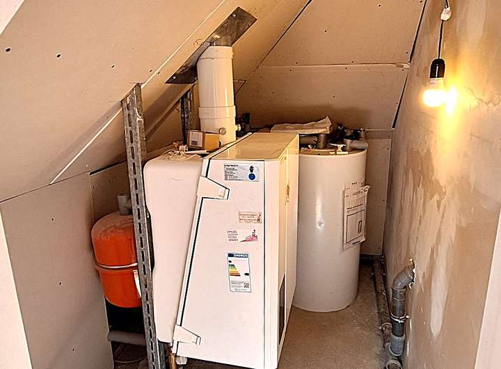 Entgegen der allgemeinen Praktik ist die Gas-Zentralheizung platzsparend und dezent in einem sep. Räumchen im DG untergebracht. Eine Massivholztreppe (Buche) verbindet die einzelnen Etagen.