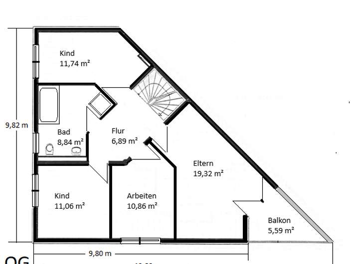 Durch die diagonale Teilung sind abwechslungsreiche Raumlösungen entstanden. Mit insgesamt 6 Schlafzimmern ist dieses Haus ideal für die große Familie geeignet und bietet auch in Zeiten von Homeoffice beste Nutzungsmöglichkeiten. Der Vollkeller offeriert extremes Staupotenzial, die Option eines zusätzlichen Hobbyraums sowie eine Außentreppe.