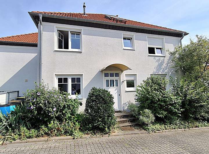 Diese diagonal geschnittene mächtige Doppelhaushälfte, planungstechnisch als s.g. „Stadtvilla“ ausgelegt, befindet sich innerhalb des mittlerweile gereiften Neubaugebietes Dortelweil-West, die Europaschule nur ein Steinwurf weit entfernt.