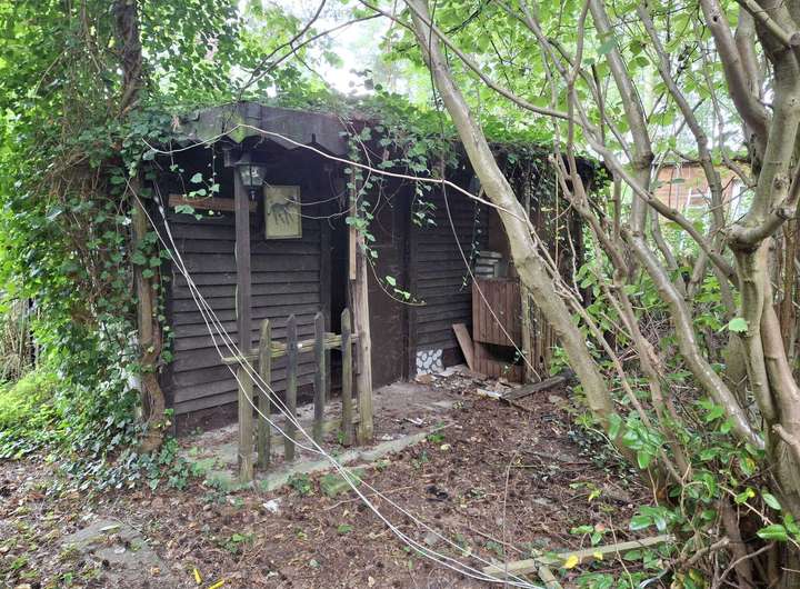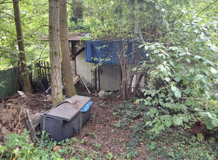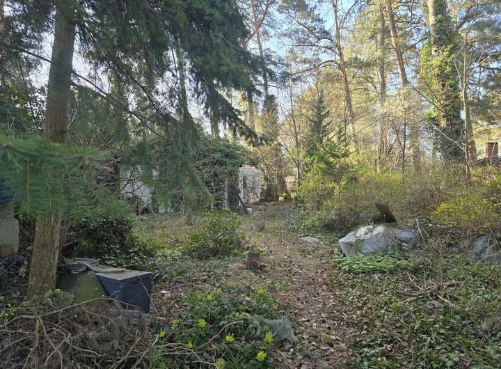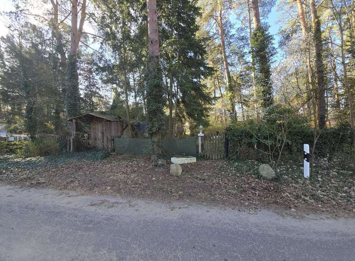 Die Umgebung ist mit Einfamilienhäusern bebaut. Auf dem Grundstück befindet sich noch ein abrissreifes Wochenendhaus und ein Holzschuppen. Das Grundstück soll verkauft werden wie es steht und liegt.