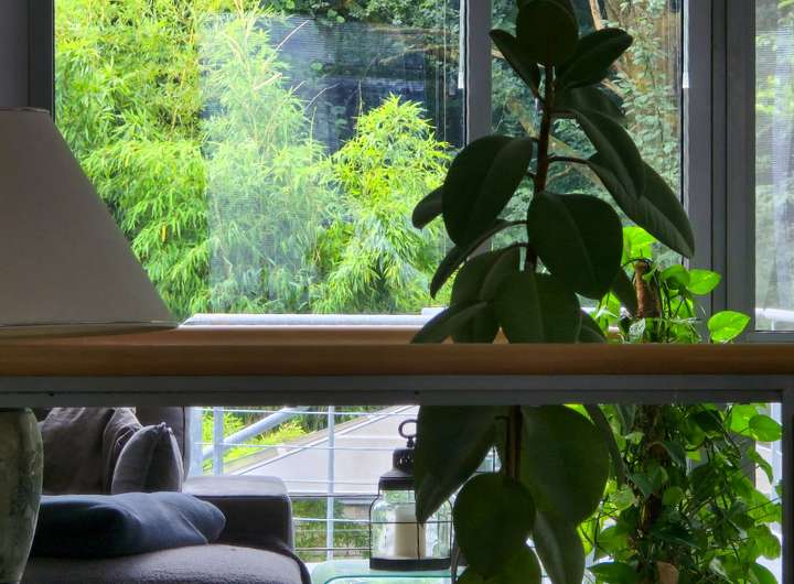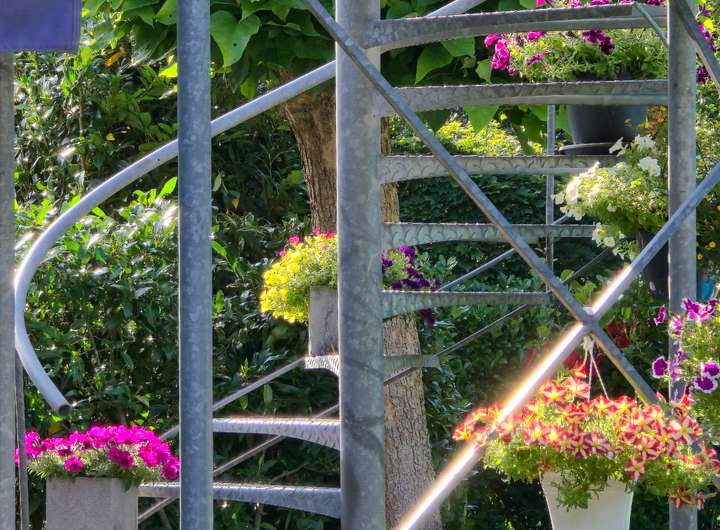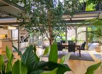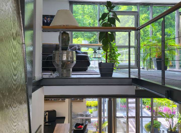 + Luftige, lichtdurchflutete Bauweise mit eleganten Metall- und Holzelementen