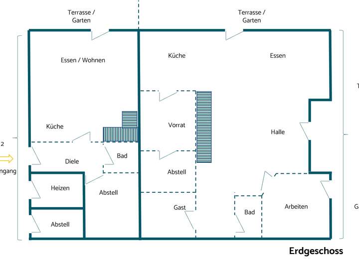 + Unterteilt in zwei Maisonette-Einliegerwohnungen