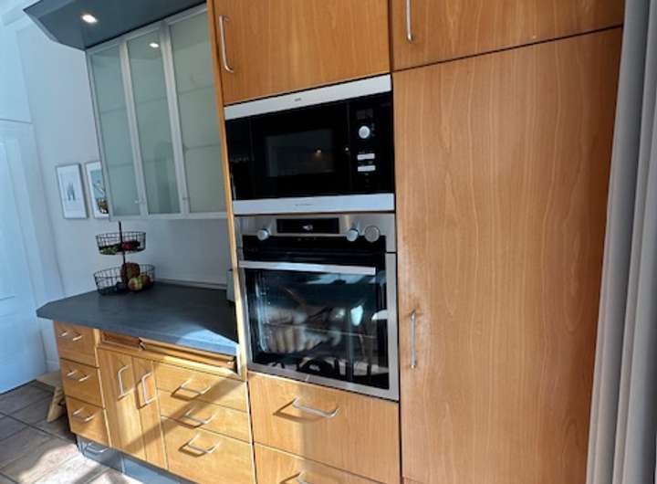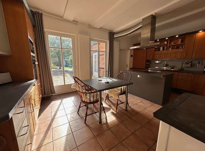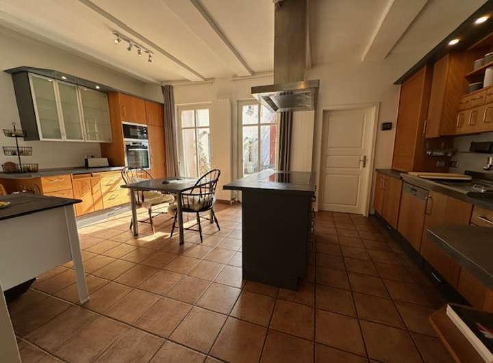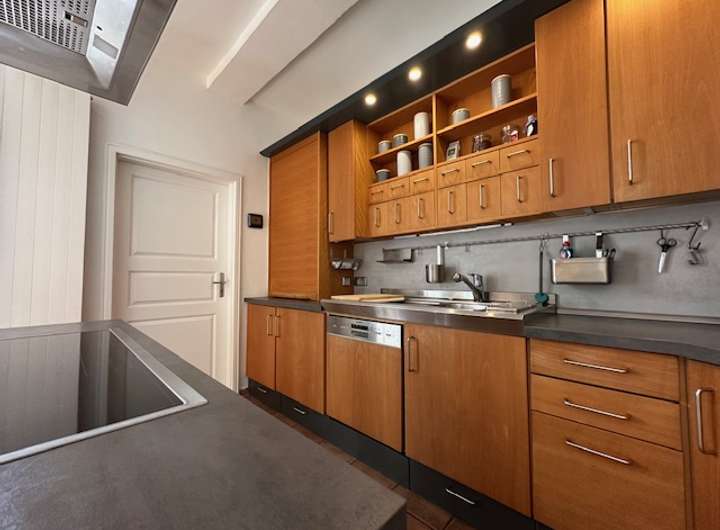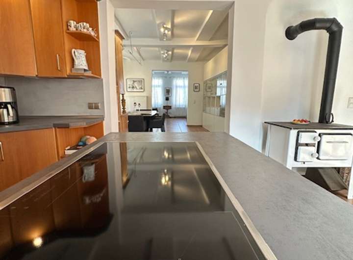 Ein besonderes Highlight ist neben der Offen- und Großzügigkeit der Räume die exquisite Küche aus massivem Holz. Sie ist der Mittelpunkt des Erdgeschosses und besticht durch ihre erstklassige Verarbeitung und die Verwendung hochwertiger Materialien. Die geräumige Kücheninsel bietet viel Platz für kulinarische Ideen. Ausgestattet mit modernsten Elektrogeräten, bietet sie eine hervorragende Funktionalität.