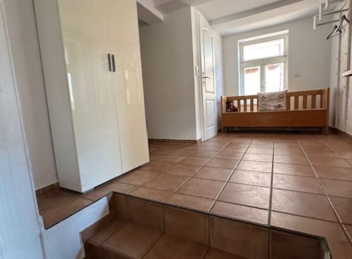 Aktuell wird das gesamte Wohnhaus inkl. Gartenhaus als Familienidyll bewohnt, daher ist der Eingangsbereich des Fachwerkhauses offen gestaltet.