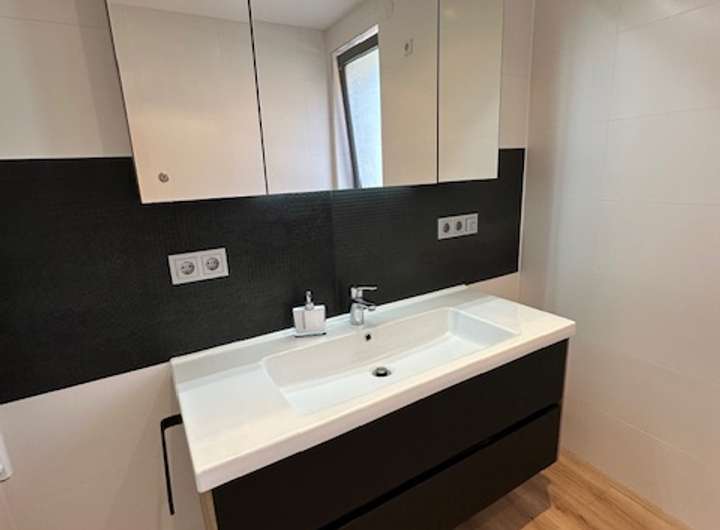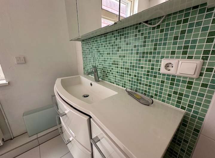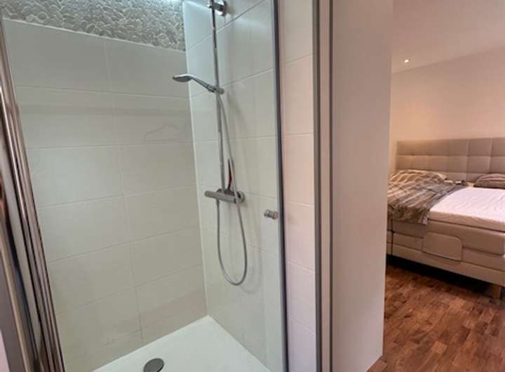 Bei der Wohneinheit Nord sind die notwendigen Vorrichtungen vorhanden, um eine Küche einzurichten. Alle Räume sind großzügig geschnitten und individuell nutzbar. Das Tageslichtbad ist mit einer stilvollen Massagedusche sowie einer luxuriösen Whirlpoolwanne ausgestattet.