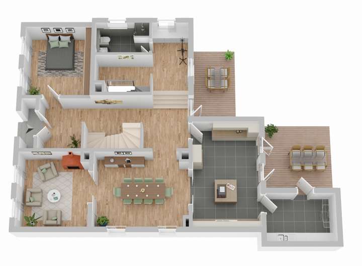 Mit wenig Aufwand können Sie das Erdgeschoss zu einer abgeschlossenen Wohnung umbauen.