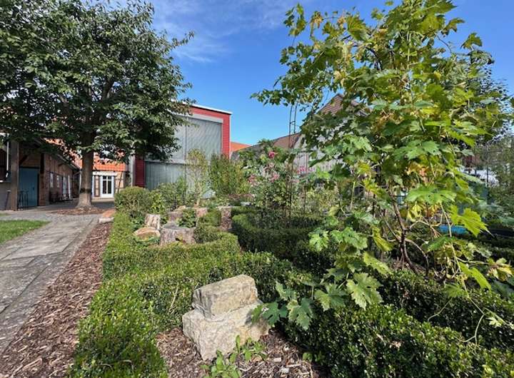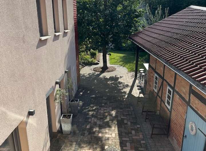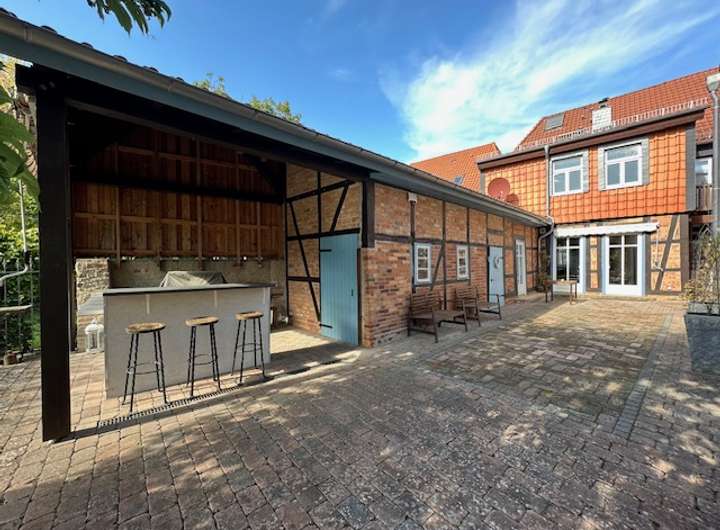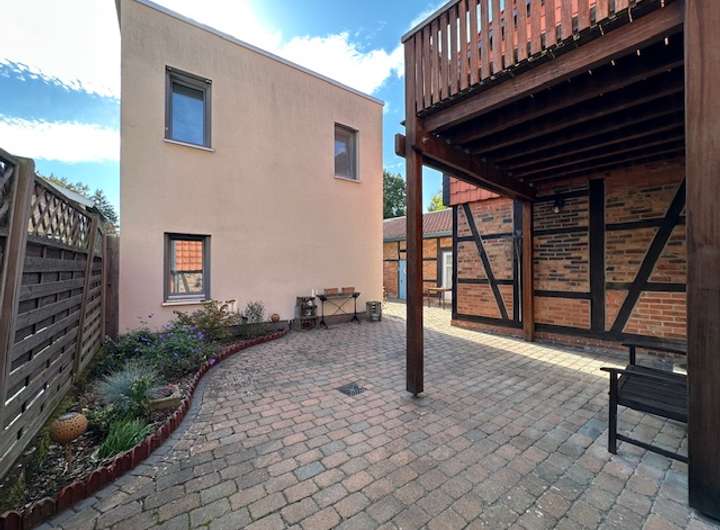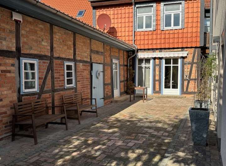 Natürlich wurde auch der der Garten und Hof nicht vergessen und neugestaltet. Neben einer neuen Außenküche, einem überdachten Freisitz und weiteren Lager- und Abstellmöglichkeiten ist ein neuwertiges Wohnhaus mit ca. 70 m² entstanden. Der moderne Zuschnitt, die großen Fenster mit Raffstoreanlage, ein Gäste-WC, der offene Küchenbereich im Erdgeschoss sowie die Galerie/Empore und Schlafzimmer - mit eigenem Badezimmer - runden das Gesamtbild dieser außergewöhnlichen und besonderen Wohnimmobilie inmitten der Altstadt von Fallersleben ab.