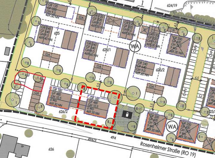 Dieses voll erschlossene Baugrundstück am Ortsrand von Großkarolinenfeld kann mit einem Mehrfamilienhaus (max. 6 WE) bebaut werden.