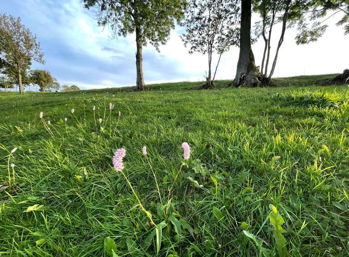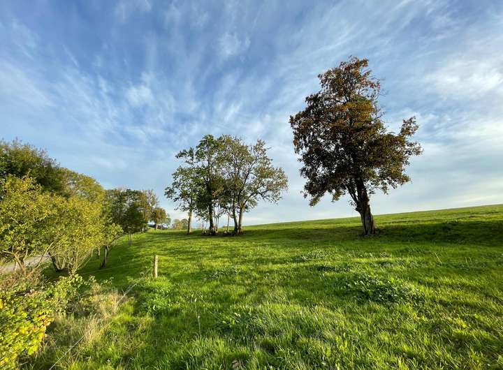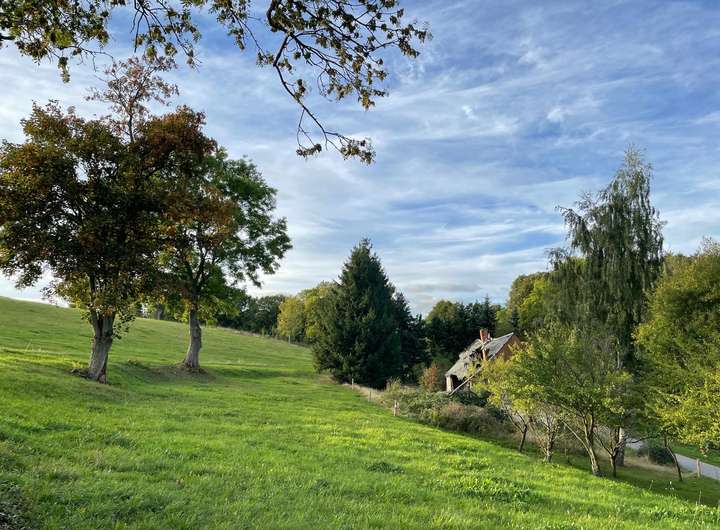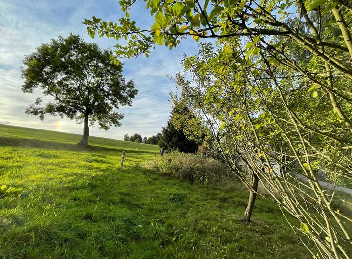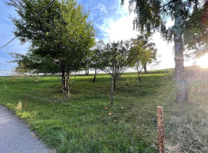 Links vom Haus (Südseite) befindet sich eine Wiese mit etwas Obstbaumbestand.