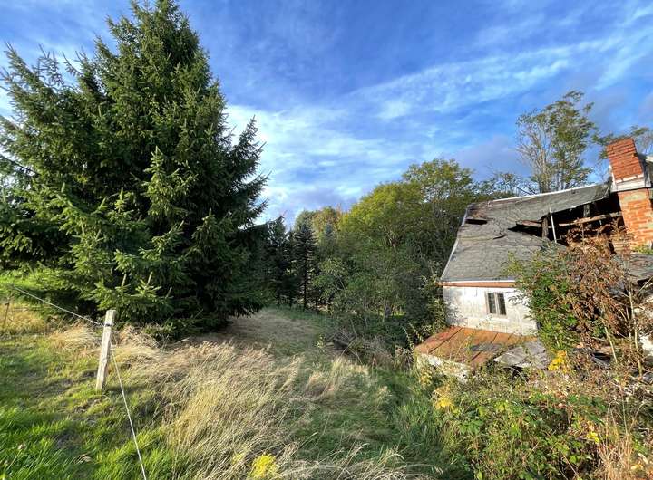 Rechts neben dem Haus (Nordseite) befindet sich eine kleine, von Fichten umstandene Lichtung. Dort befindet sich das Fundament eines abgerissenen Schuppens, das für Garagen- oder Carport-Neubau genutzt werden könnte.
