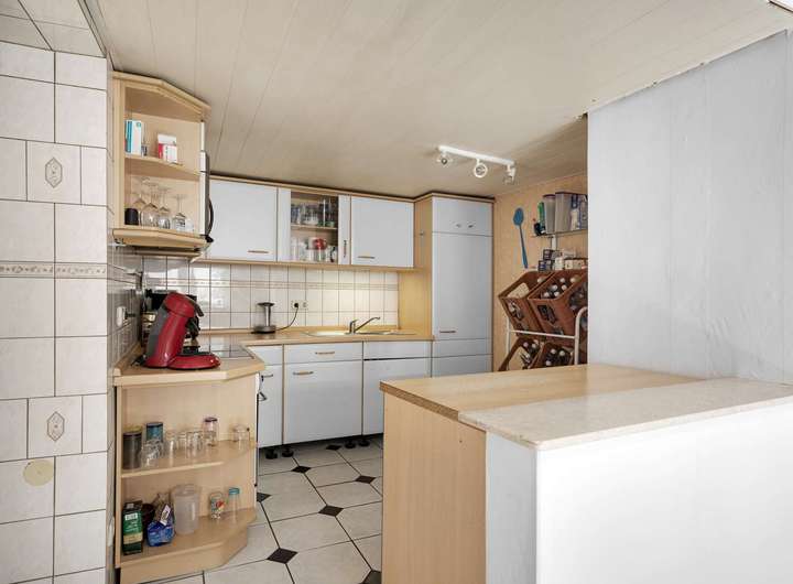 Die vorhandene Küche im Haupthaus ist bereits im Kaufpreis enthalten und lässt sich ganz nach Ihren individuellen Vorstellungen modernisieren. Zusätzlichen Stauraum finden Sie in einem separaten Abstellraum ebenfalls im Haupthaus.