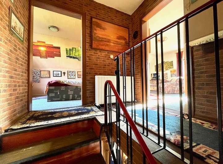 Über den gemauerten Treppenaufgang gelangen Sie in das Obergeschoss mit einem herrlichen Ausblick. Der gegenwärtige Grundriss gibt zwei Räumlichkeiten und ein Ankleidezimmer her, und könnte bei Bedarf auf drei Zimmer aufgeteilt werden.